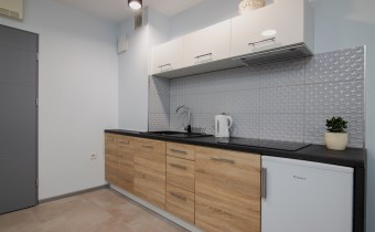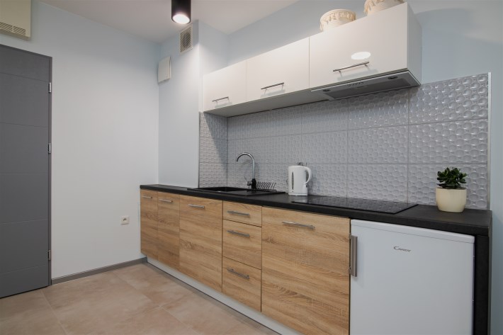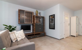 Mieszkanie składa się z pokoju dziennego z aneksem kuchennym oraz łazienki. Pełne umeblowanie plus sprzęty AGD (pralka, lodówka, pochłaniacz, płyta elektryczna, piekarnik) oraz telewizor.