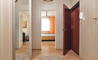 Pokój dzienny z balkonem, w holu szafa, sypialnia od strony południowej.