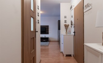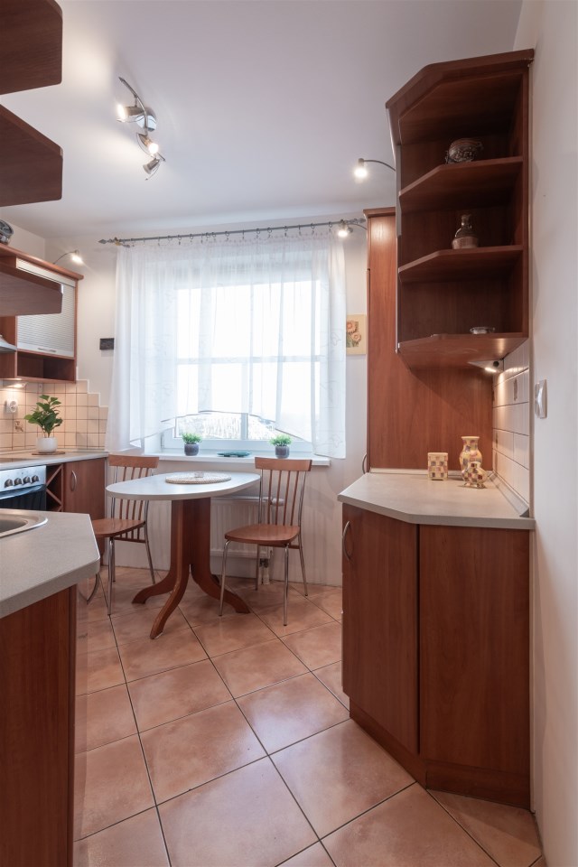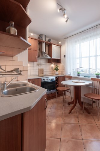 Mieszkanie położone na trzecim piętrze budynku, o północno zachodniej ekspozycji okien. Z balkonu rozpościera się piękny widok na zachodnią część miasta. Mieszkanie w bardzo dobrym standardzie, na podłodze panele, ściany gładzone, malowane. W łazience, z wanną i wc, ładna, jasna glazura i terakota. Pokoje w całości umeblowane i wyposażone. Kuchnia umeblowana i wyposażona w sprzęt AGD - płyta elektryczna, piekarnik elektryczny, lodówka, okap, kuchenka mikrofalowa. W łazience znajduje się pralka. Dodatkowo w mieszkaniu znajduje się duża garderoba. Ogrzewanie i ciepła woda z SEC - osobna umowa.