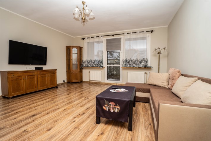 jasny, przestronny salon z wyjściem na balkon, dobrze doświetlony,