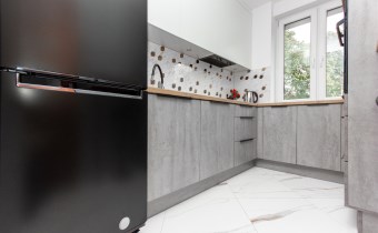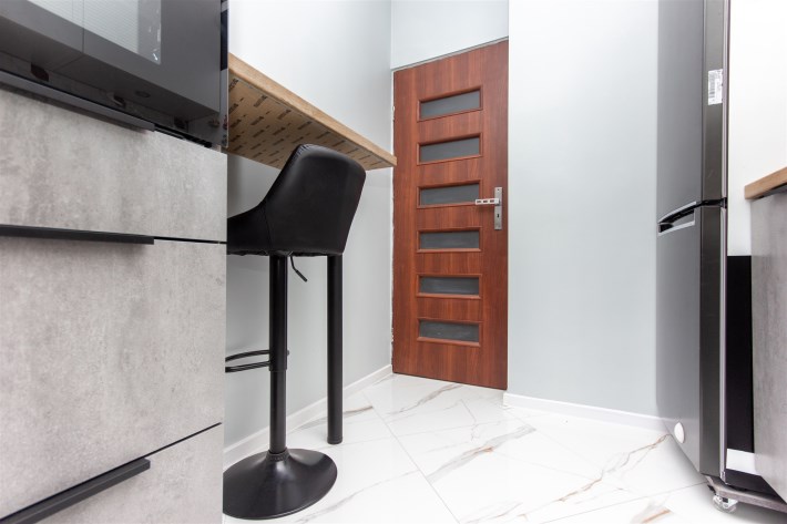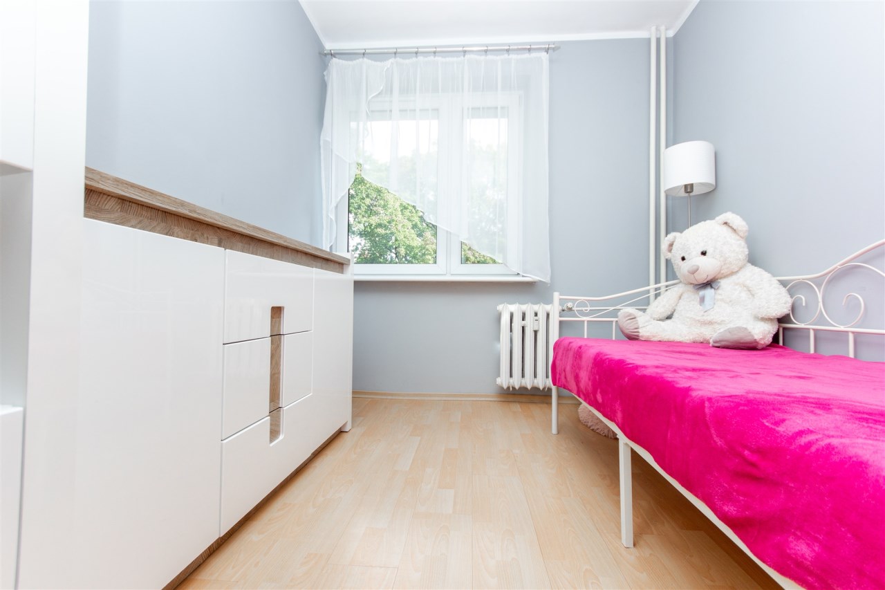 Mieszkanie składa się z trzech pokoi – dużego, przestronnego salonu oraz dwóch oddzielnych pokoi, które doskonale sprawdzą się jako sypialnie, gabinet lub pokój dla dziecka. Kuchnia jest oddzielna i w pełni wyposażona. Znajduje się w niej lodówka, zmywarka, mikrofalówka oraz piekarnik. Kuchnia posiada pojemne szafki, duży blat roboczy oraz wygodny barek śniadaniowy, który dodaje wnętrzu funkcjonalności i komfortu.