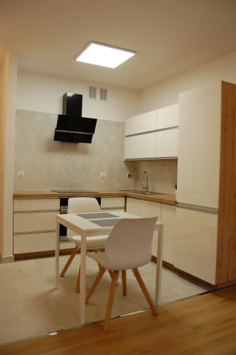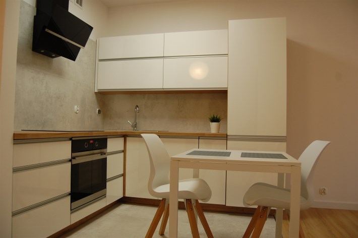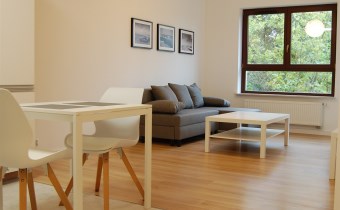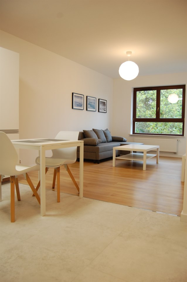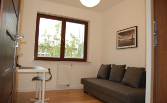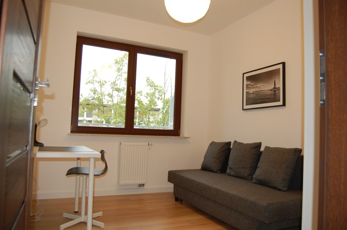 Mieszkanie 2 pokojowe zlokalizowane w  nowym 4 piętrowego budynku z windą. Na powierzchnię mieszkania składa się salon z wyjściem na balkon Salon  wyposażony w rozkładany tapczan , ławę . Sypialnia łóżko , biurko, krzesło biurowe.