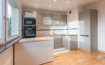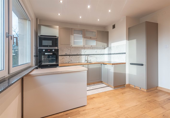 Mieszkanie w bardzo dobrym standardzie. W pokojach na podłodze nowa deska dębowa, ściany gładzone, malowane stolarka drzwiowa wewnętrzna bezprzylgowa, zamki magnetyczne. Nowe trzyszybowe okna PCV z filtrem UV - okna weneckie, nie są potrzebne rolety lub zasłony. Parapety wewnętrzne wykonane z granitu królewskiego z zatopionymi żyłkami złota.
