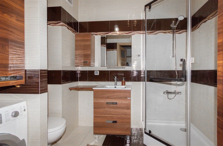 Wyposażenie łazienki prysznic, pralka, kabina prysznicowa