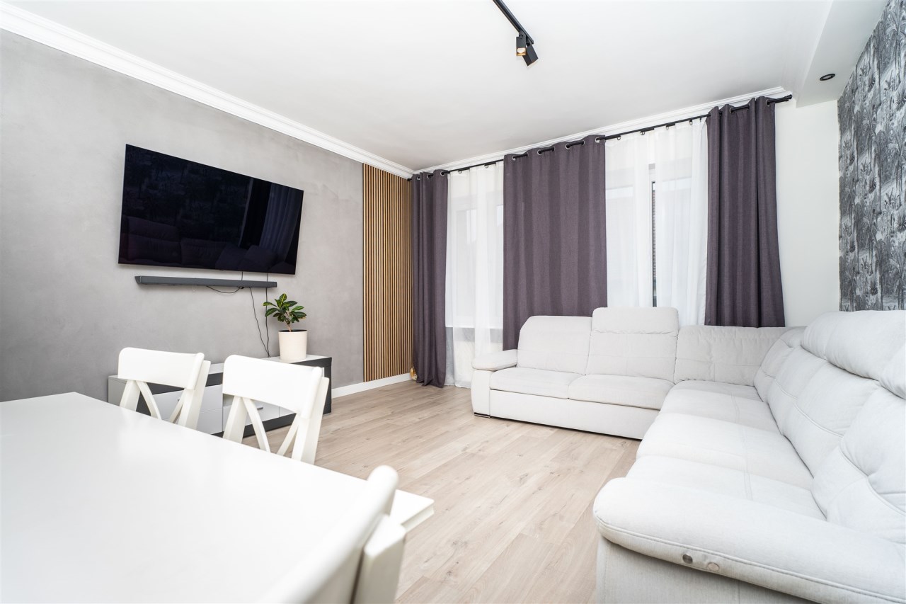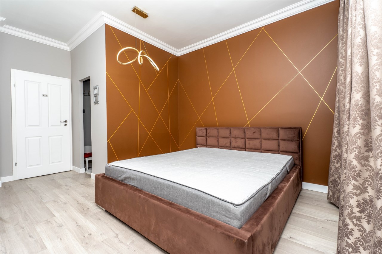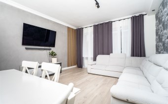 umeblowane. W salonie kanapa, telewizor, meble użytkowe. Zabudowana kuchnia wyposażona w komplet wysokiej klasy sprzętów AGD, pralkę oraz suszarkę. Sypialnia z dużym dwuosobowym łóżkiem oraz osobną garderobą. Łazienka z prysznicem. Nowoczesne oświetlenie. Mieszkanie jest