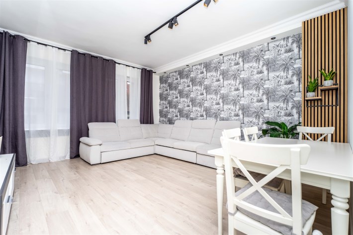Dzięki dużej ilości okien oraz wysokości pomieszczeń mieszkanie jest
