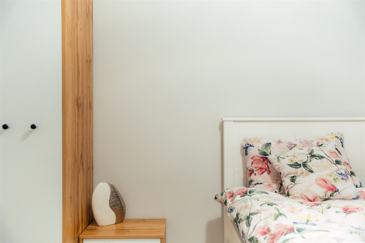 Na powierzchnie użytkową mieszkania składają się : przedpokój, sypialnia, salon z aneksem kuchennym, kolejna sypialnia, łazienka oraz strych.