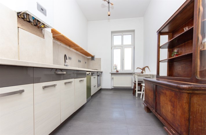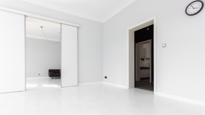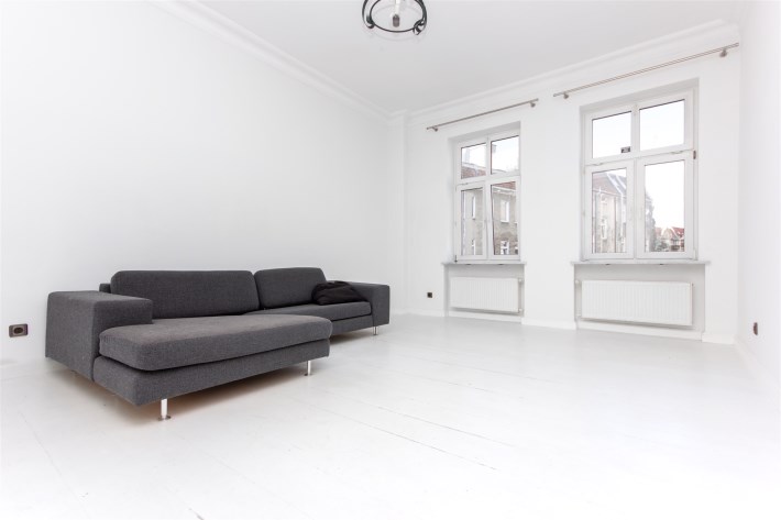 Mieszkanie zachowane w spójnym stylu, oddającym urok kamienicy, jest bardzo słoneczne, jasne i przestronne.