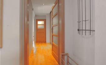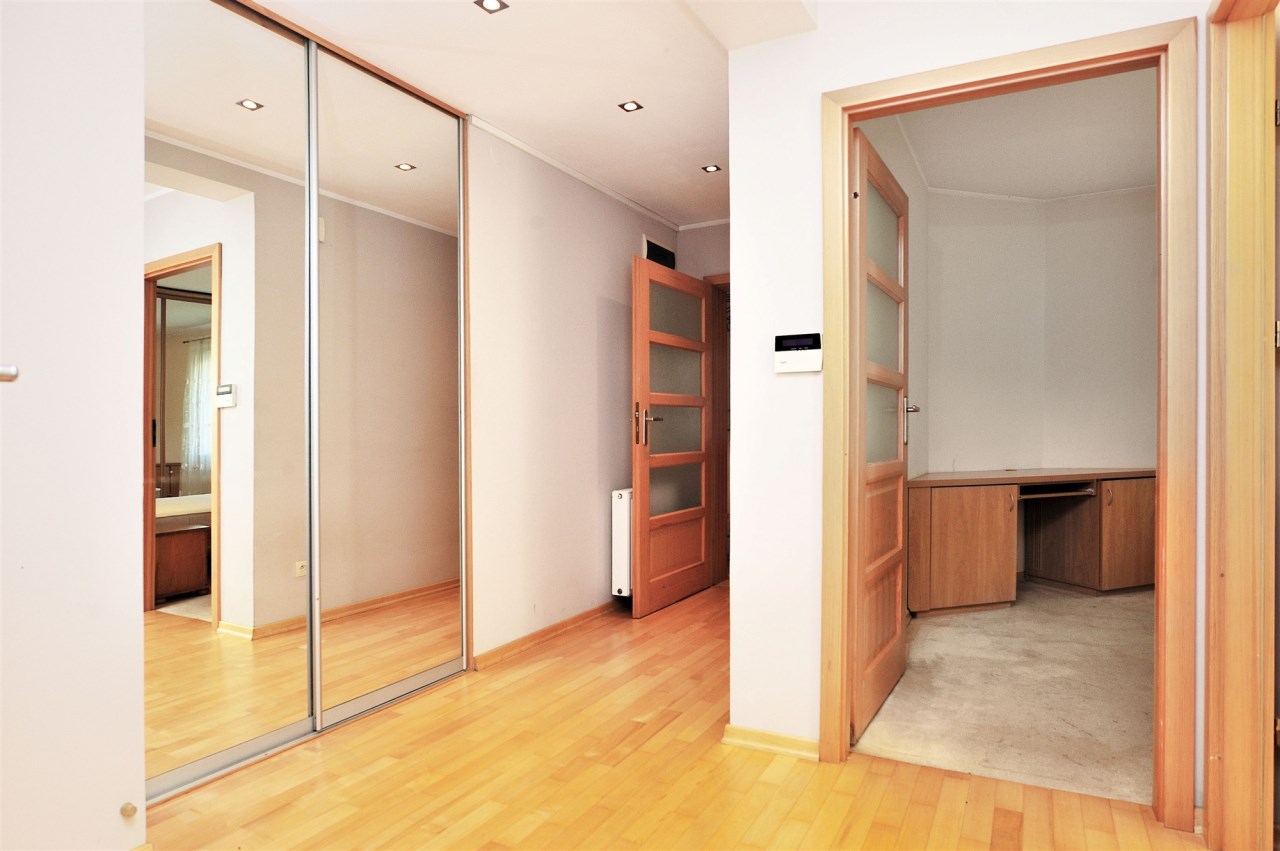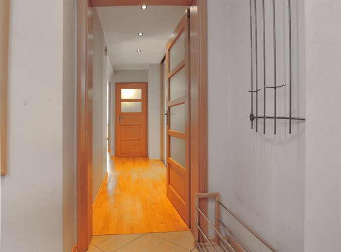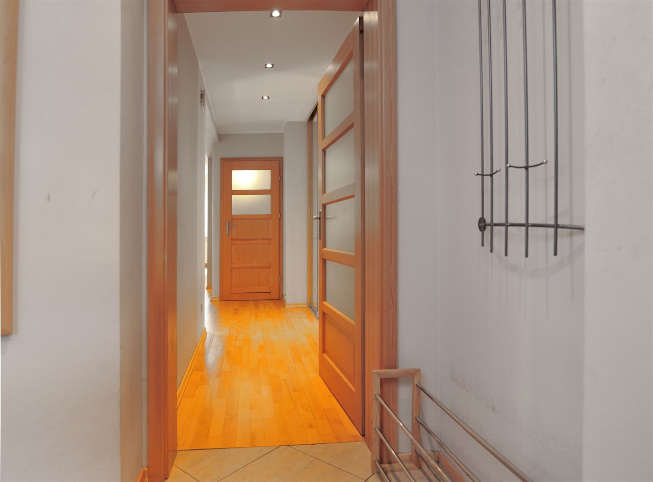 - Duży hall w środkowej części mieszkania i wejście do osobnej garderoby. W garderobie szafy i rellingi z wieszakami.