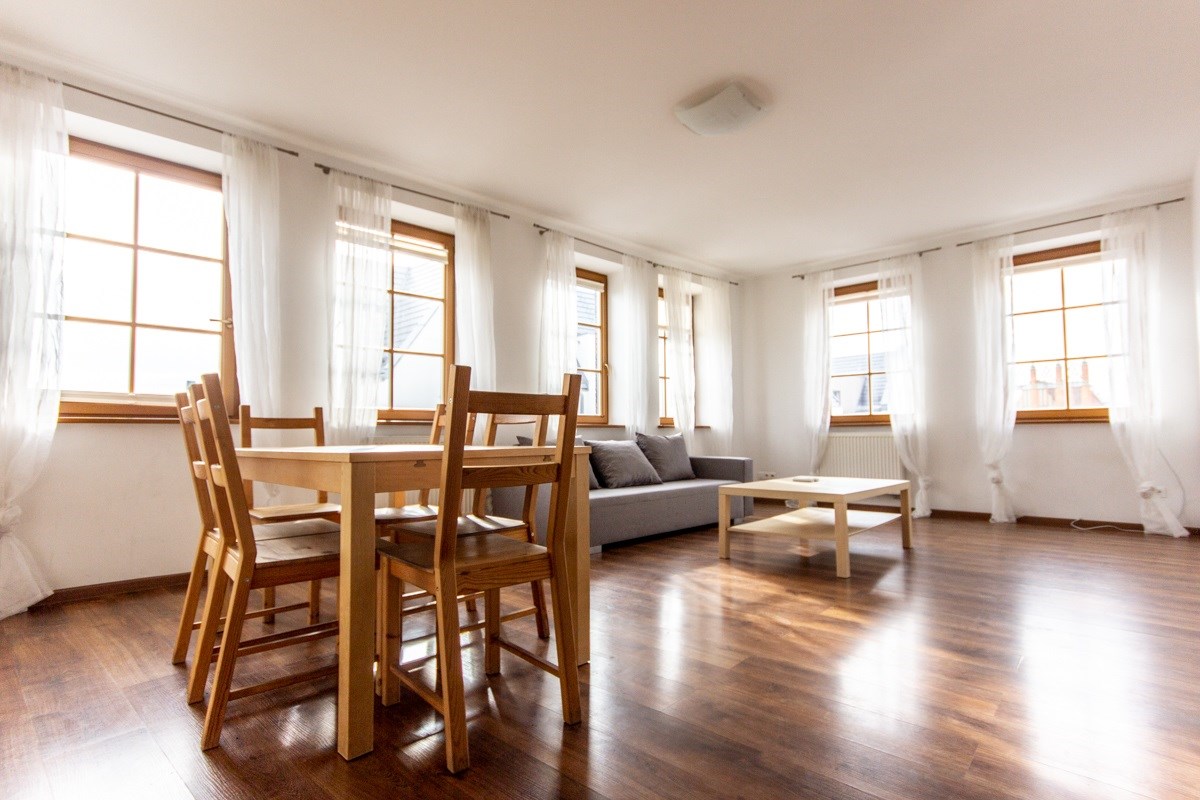 For rent a 5-room, 3 floor apartment with an area of 130 m2 located on a 4th floor of  a building from 2013 in the Old Town. The apartment consist of :