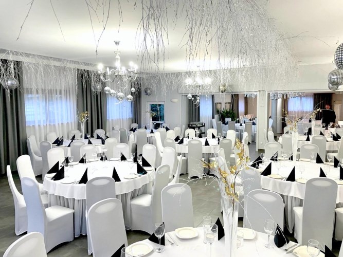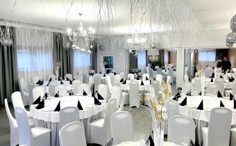 The building, constructed in 2015, has a total area of approximately 1,200 m² and consists of three floors. The ground level serves recreational and service functions, including a banquet hall (with partitioning options), sanitary facilities, laundry room, utility spaces, modern boiler room, and a fully equipped professional kitchen.